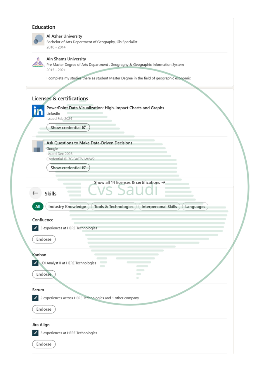 نقوم بتحسين جميع أقسام الحساب ليظهر بشكل احترافي ويجذب مسؤولي التوظيف والشركات الباحثة عن الكفاءات.